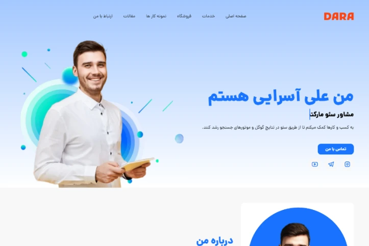 دمو زیبا آژانس دیجیتال مارکتینگ دارا با یک هدر زیبا و مدرن مناسب جهت استفاده شرکتهایی که خدمات دیجیتال ارائه میدهند.